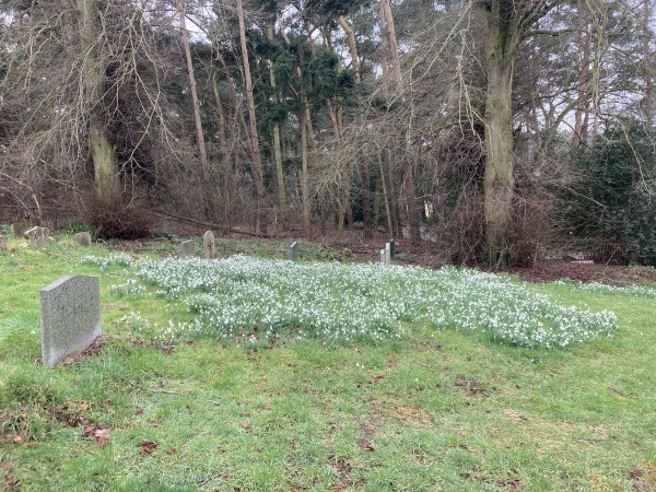 I spoke to the groundsman one day. He told me it was a site of pagan worship. There are ancient stones under the church tower. I believe it. He also told me this patch of snowdrops were planted for all the children and babies who died in the nearby villages. I believe it too. -