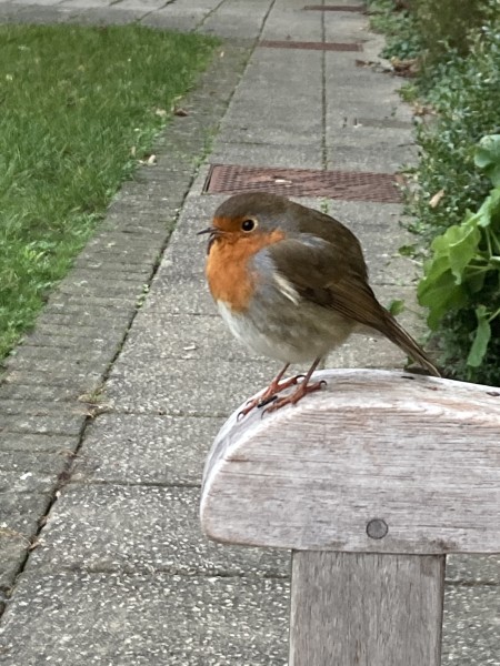 THIS ROBIN HAS A BROKEN BEAK. HE WOULD COME AND SIT NEXT TO ME WHILE MY SON HAD CHEMOTHERAPY TO FIX HIS BROKEN LUNG.